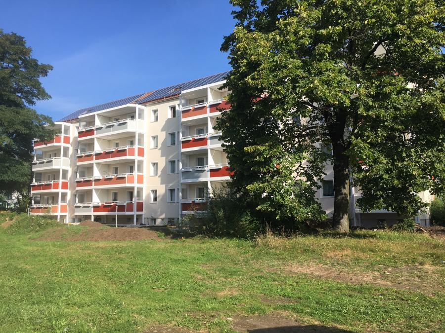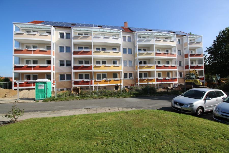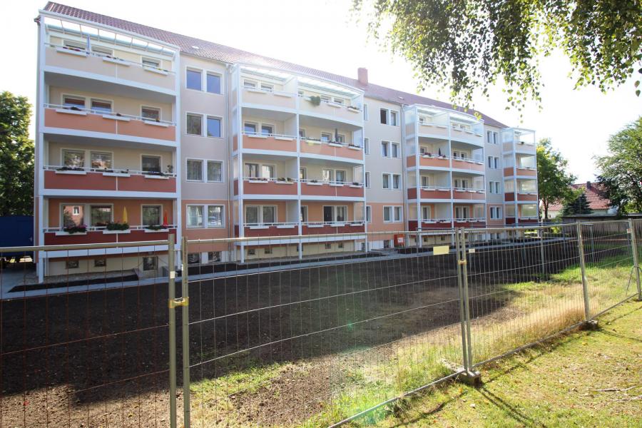 Im Bereich Etkar-André-Str. 1-17 sind an allen 3 Wohnobjekten die neuen Balkonanlagen zur Nutzung an unsere Mieter übergeben, das gleiche gilt für die Wohnobjekte Trotzendorfstraße 14-18 und Hans-Beimler-Str. 26-30. Jetzt werden die Außenanlagen und die hofseitigen Gehwege wieder entsprechend hergestellt.