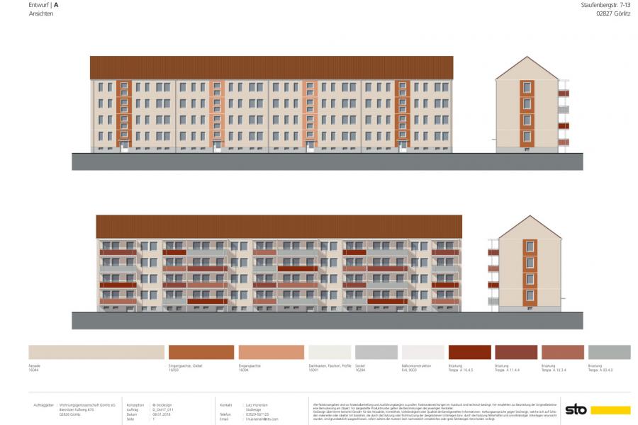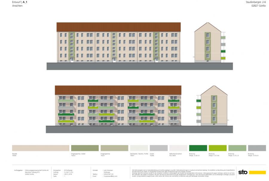 An unseren Wohngebäuden Stauffenbergstraße 2-6 sowie 7-13 in Weinhübel werden dieses Jahr insgesamt 56 neue Balkone montiert. Gleichzeitig erhalten die Hoffassaden eine Wärmedämmung und neu gestaltete Kellertreppenausgänge und beide Objekte komplett ein neues Farb-Outfit.